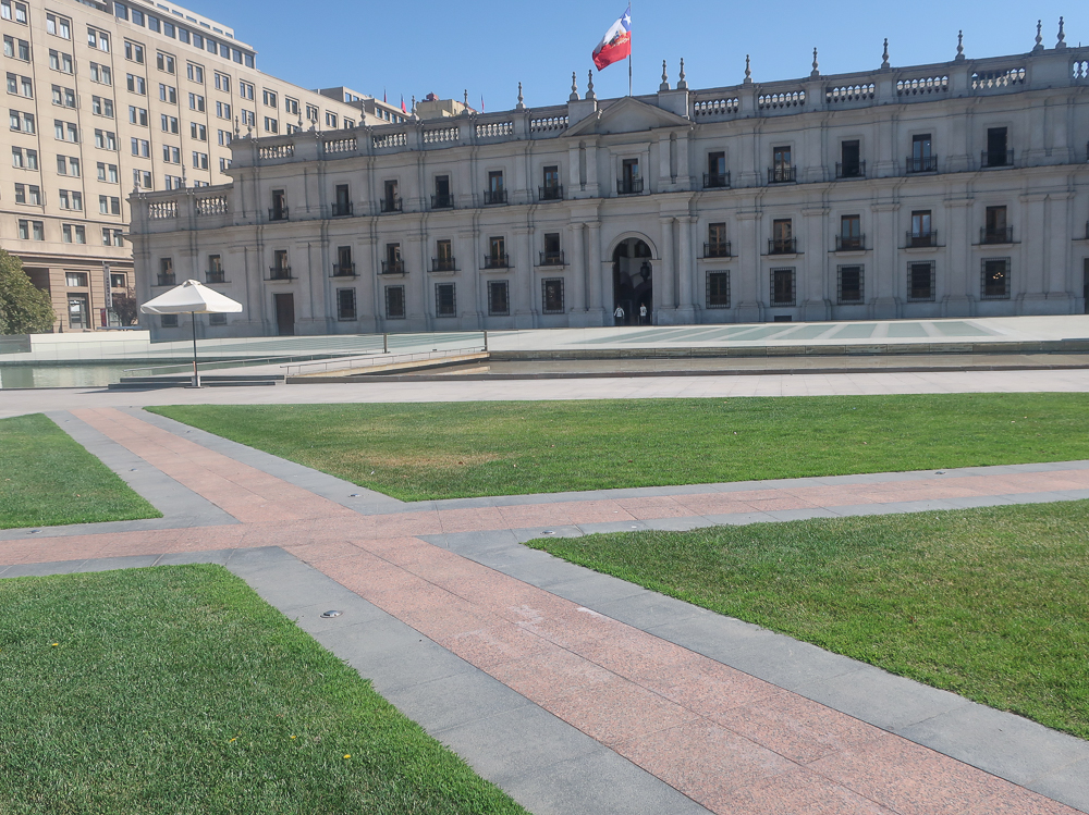Once back down at ground level we walked to the Palacio la Moneda, the presidential palace. Visits must be prearranged, as access is restricted, this being a working public building. However, we stopped to visit the Centro Cultural La Moneda, located under the building and square. Here we discovered two interesting art exhibits as well as a wonderful public space that included a reading room/library and play projects for children.