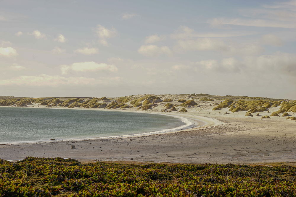 Magellanic penguins are small, and their nests are burrows in the ground. The Gypsy Cove park where we were taken via bus to see them is located beyond the airfield, in an absolutely stunning bay. The penguins we saw were either just outside their burrows, so partly hidden in the vegetation, or faraway, down on the beaches.