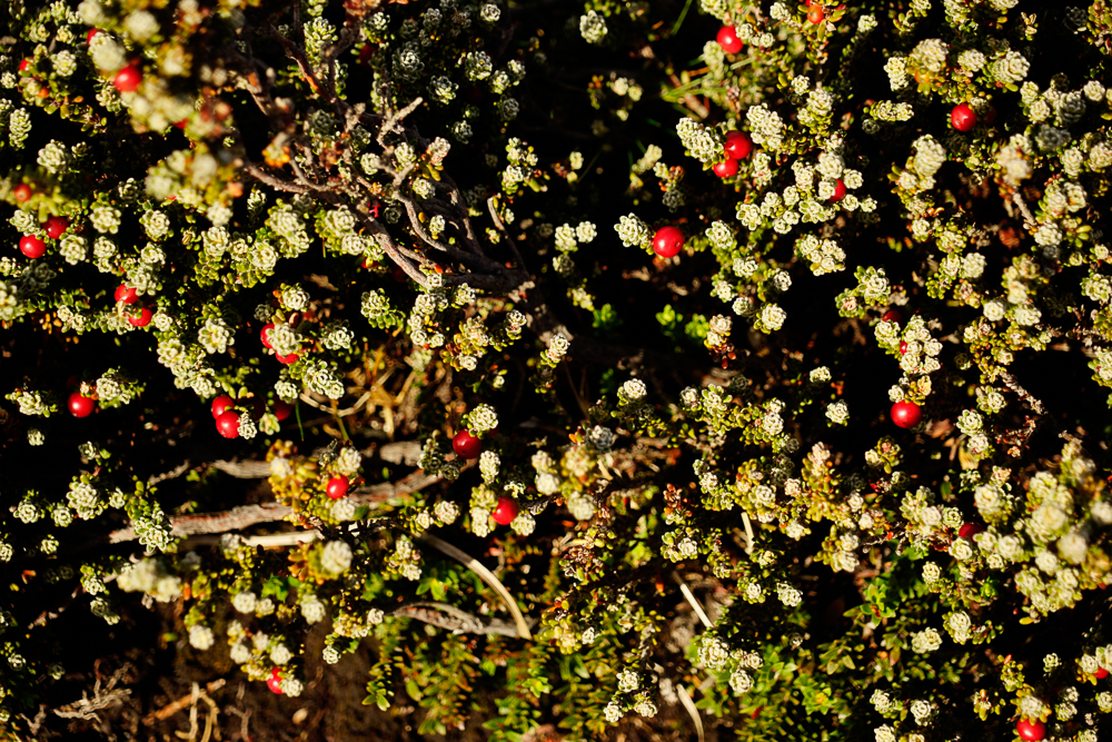 One of the shrubs is called diddle dee. It produces red berries in the summer which are an essential part of the food chain for the birds on the Islands. The people also use it to make jam. But copious amounts of sugar are needed as the berries are quite tart!