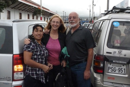 Within a half hour of commencing the drive home, it was clear that the amount of driving this trip had entailed was awful. Worth it, but awful! Add to that, we were stopped by the police and threatened with car-empoundment because a renewal document was missing from the car’s papers. Miriam was frantic but she convinced the police to let us go, promising to get all the paperwork in order by Monday morning. Between a late start, a slow drive and the police stop, we did not arrive in Ibarra to meet our other driver, Paul, until 5:00 pm, smack dab at the onset of rush hour. Traffic was chaotic, but again, it gave ample opportunity for people watching. Oh, and for the collection of evidence that drivers in Ecuador are even more outrageous than the ones were are used to in Puerto Rico!