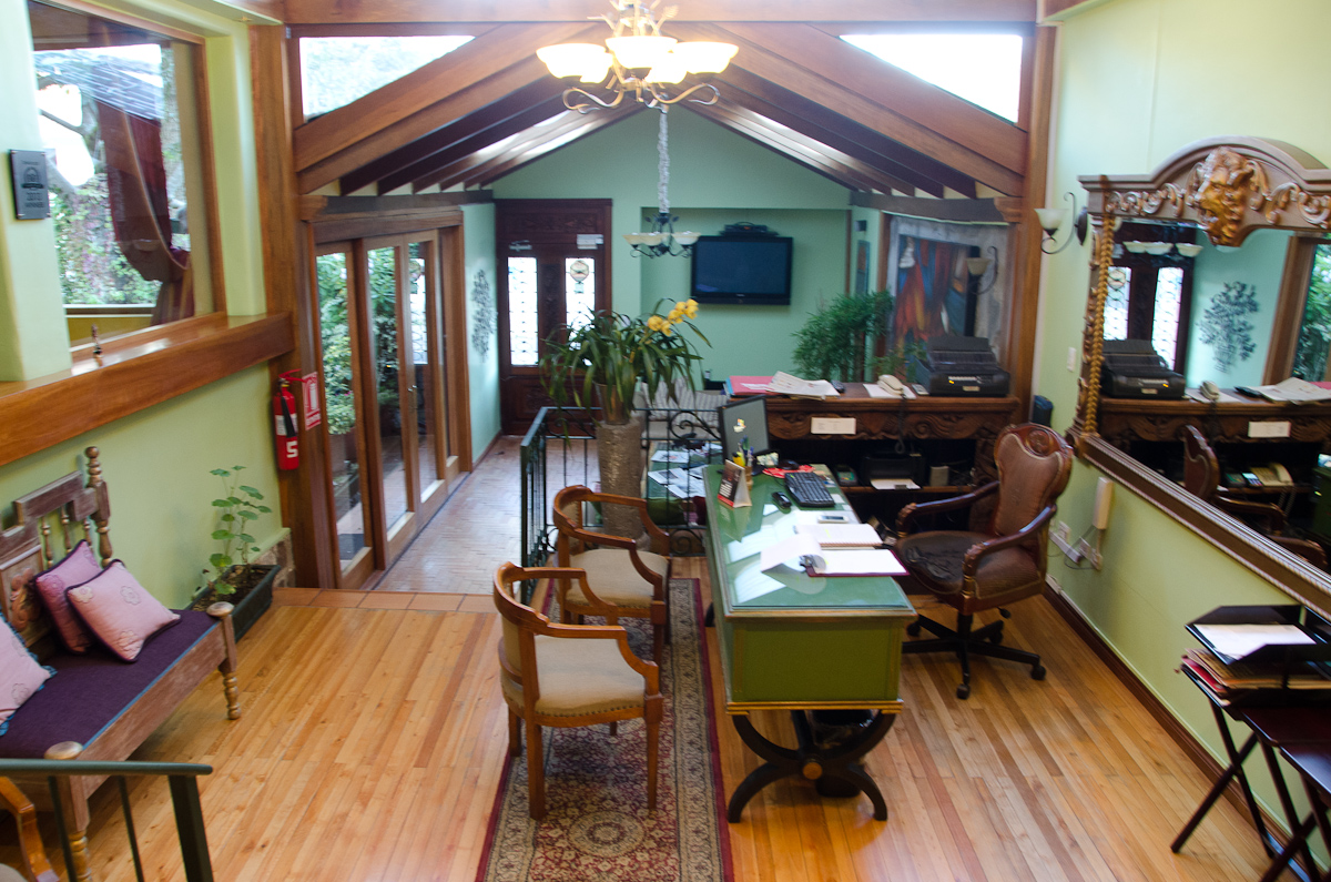 Paul took us through Otavalo, allowing a 15 minute stop in the main square to take a few pictures, but it was uninspiring. From there it was just a hop, skip and a jump around the lake to the Hacienda Cusin. It was late for taking pictures, but though the sky was overcast, the beauty of the setting called for some heroic efforts with the camera, so up goes the ISO.
