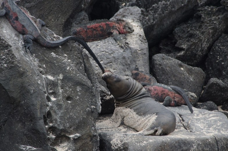 This sea lion pup was having fun with the marine iguanas tail – and the iguana didn’t seem to mind at all.