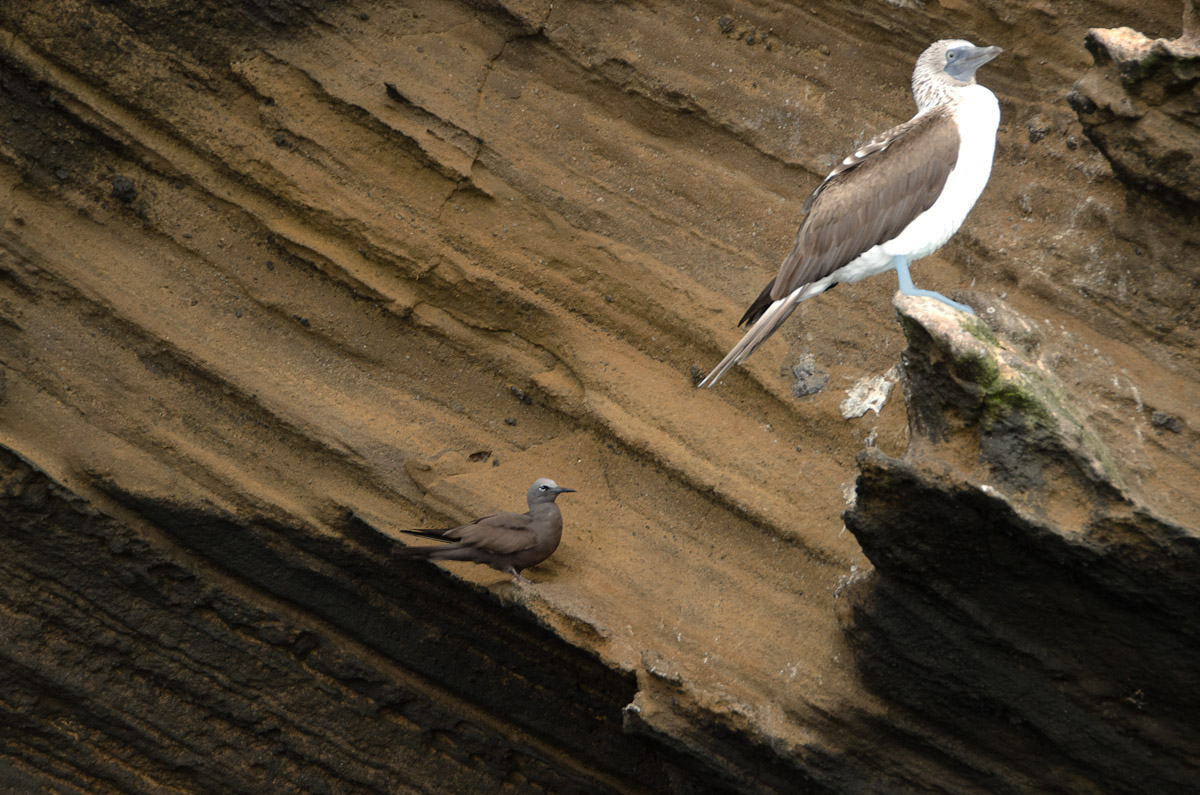 So, in addition to being students of the birds and aquatic animals, we were spell-bound listeners learning about the rocks in front of us. I will try to explain them in the captions of the pictures as they are much easier to describe when you can see them. Riding around we saw Blue-footed Boobies, pelicans, herons, penguins, brown noddies, gulls and cormorants …and of course, the marine iguanas and crabs.