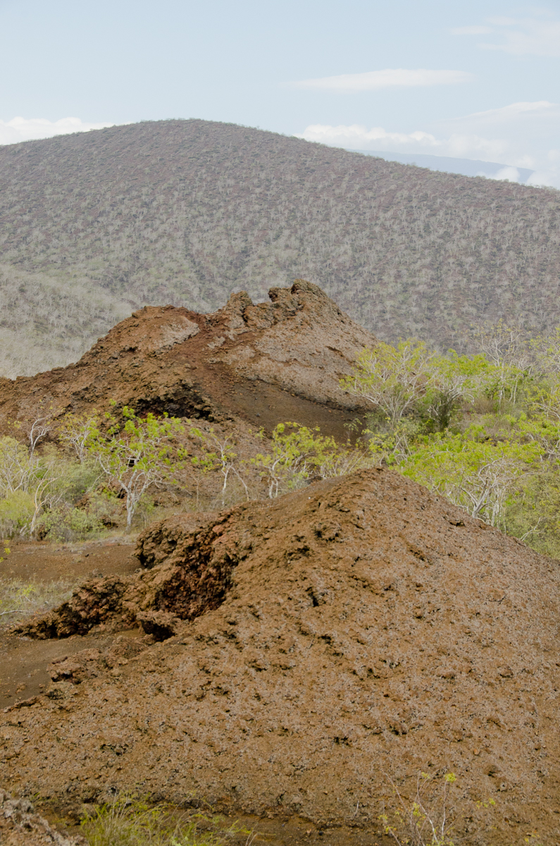 I suppose this is a good time to try to explain what I think I learned about the Galapagos and their formation…Start with a vent under the ocean where magma can escape. Now think about how the plates in the Pacific Ocean are moving – and realize that they are moving south easterly. If you look at the map of the Galapagos Islands, the oldest islands are to the east, and the youngest of them all, Fernandina is the most westerly. Over time, the volcanoes have formed from the vent and created islands. The islands have moved to the south east on their plates, and the vent continues to push up new volcanoes or to allow magma to seep out to the surface. It would seem that the vent has not yet created a brand new volcano and a new island for the chain, but the volcanic activity is still going on beneath the earth’s crust. Some of that will bubble up as lava in odd places. (How’s that for a very unscientific – and probably erroneous – explanation!)