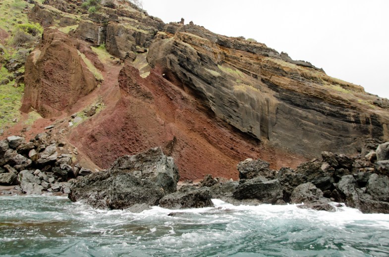 The colors of the rocky cliffs were beautiful despite the grey skies.