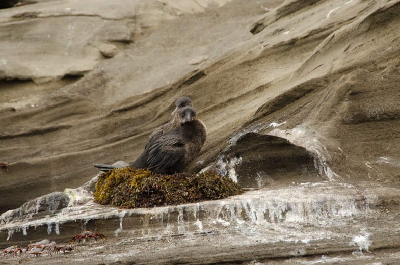 Flightless Cormorants on their nest