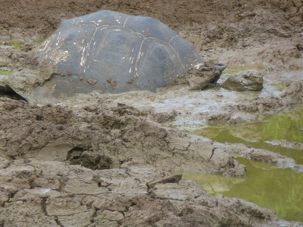 We found a nice mud hole with several beasts submerged to the edges of their top shells to protect themselves from the nighttime mosquitoes. Naturally solitary animals, this was an interesting sight!