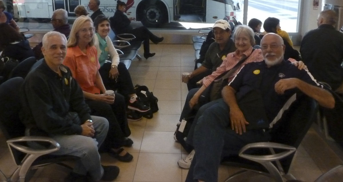 The Magnificent 6 at the airport in Quito killing the two hour delay.