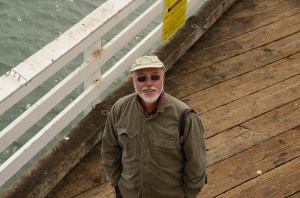 Onward we went, to Malibu, on our way to Cindy’s. The weather was not particularly nice. It was downright cold for me and Gerry and our thin tropical blood. The wind was holding its own and the sky was overcast, but as soon as we saw the Malibu Pier (recognizable to even a neophyte California tourist like me) we had to stop and get out of the car to walk to the end! Finally a picture taking opportunity!