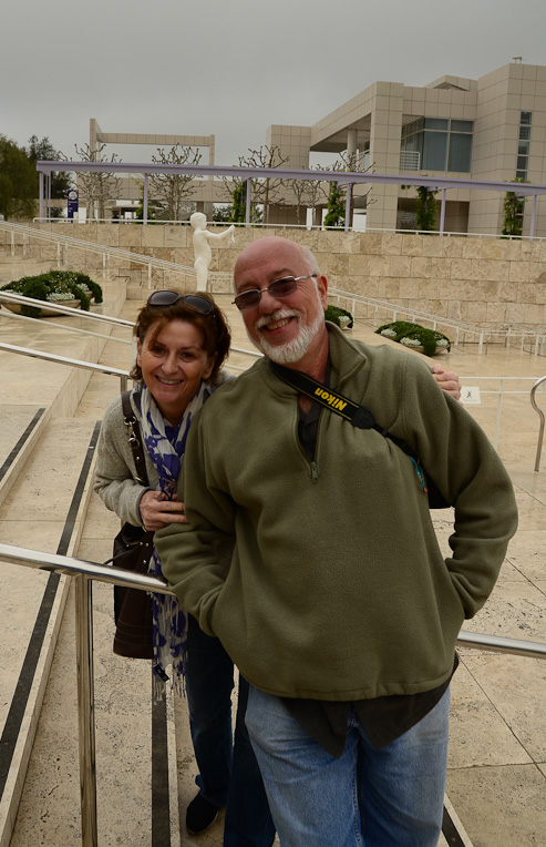 Yesterday was pretty cloudy and cold again (cold for us). After an early but unhurried morning, Greg took off for the city because his mother was having surgery (which went well) and Gerry, Cindy and I drove down to the Getty Center, via the famous traffic-choked expressways of LA.