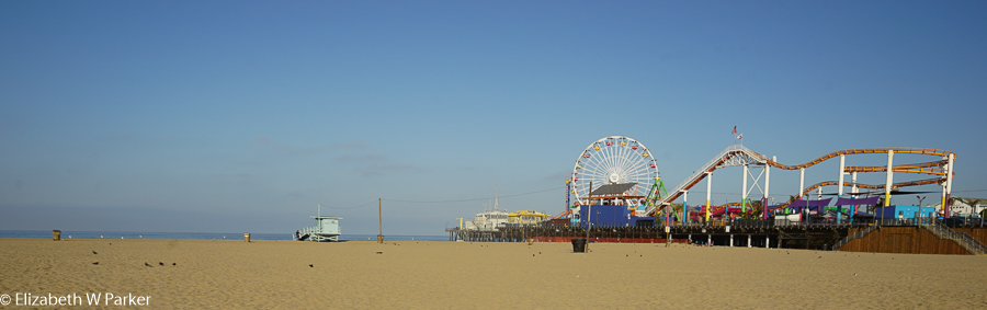 My first full day, (Tuesday, July 19th) we set out in the early morning to explore the Santa Monica Pier. It was deserted but for a few souls who either hadn’t yet gone to sleep or, unable to sleep, were already up and about like we were, suffering from minor jet lag that hadn’t reset the body clock from the two-hour time difference.