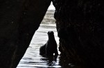 We drove southward to a place called Half Moon Bay. It was raining, so we had a very good lunch at the Ritz and waited for the sky to clear. From there. we headed to a park to see the elephant seals but arrived too late to make the trek to where they were. We contented ourselves with shooting the beach and the coastline, and we were rewarded with the ephemeral appearance of a seal (sea lion) who allowed brief silhouettes.