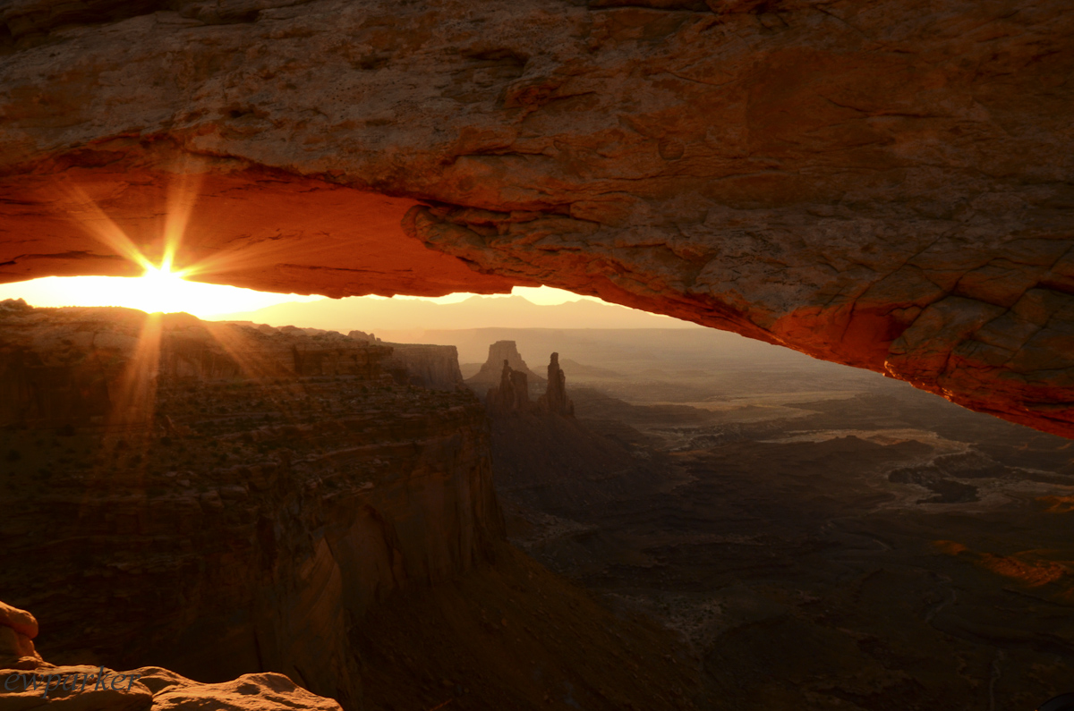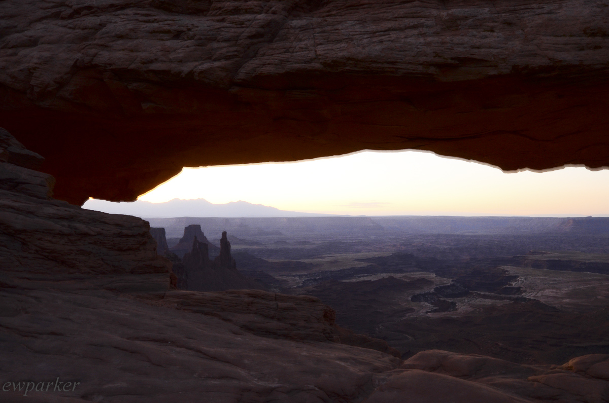 Mesa Arch is not one of the towering arches. It is rather flat and low – seen from the side we were on. There was not much about it that was remarkable in the dark, but as dawn revealed the scene it watched over, it was both remarkable and unforgettable. When the sun finally peaked over the horizon the underside of the arch started to glow orange. The effect was worth every lost minute of sleep.