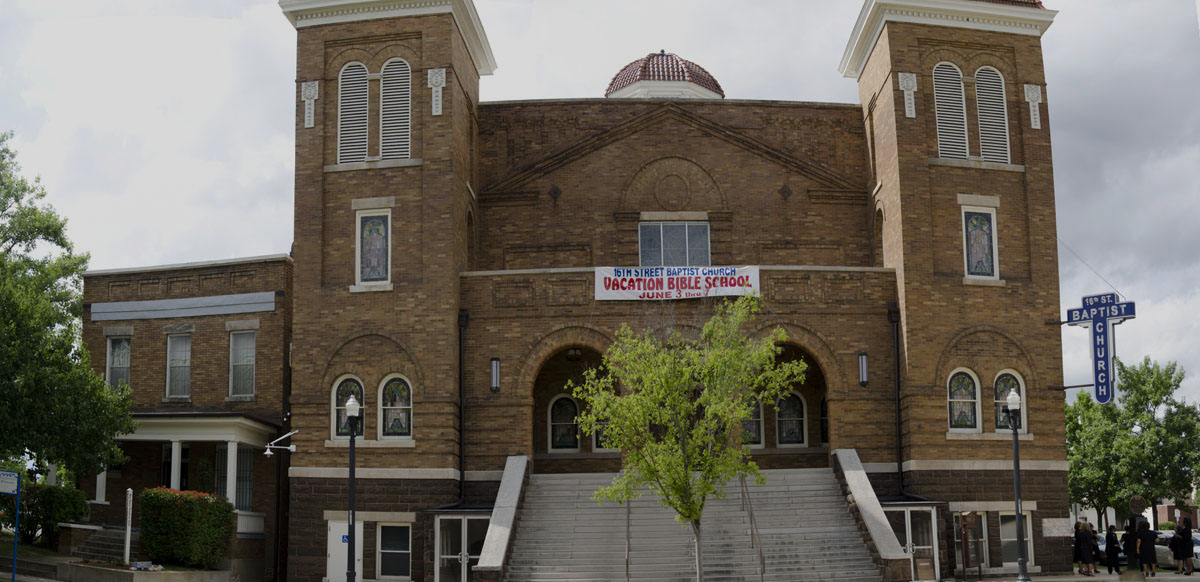 From the museum, we crossed the street to Kelly Ingram Park, where there are a series of sculptures that interpret the events depicted and described inside the museum. Looming from the corner is the 16th Street Baptist church, the scene of a bombing that killed four young, black teen girls.