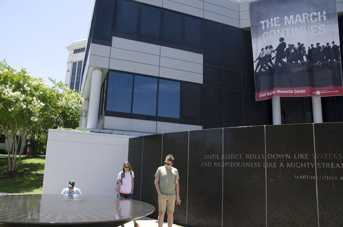 Walking this street we got to see both civil war landmarks and civil rights landmarks. We saw where the documents were signed seceding Alabama from the union and we saw where the Union flag was re-hoisted after General Lee’s surrender at Appomattox. Actually, we got to see the historical markers commemorating these events (remember, everything was closed to visitors on a Sunday!). We saw the Dexter Street Baptist Church where Martin Luther King, Jr. was pastor and the bus stop where Rosa Parks boarded the bus that fateful day and galvanized the civil rights movement in America by sparking the Montgomery bus boycott. We saw the civil rights memorial designed by Maya Lin.