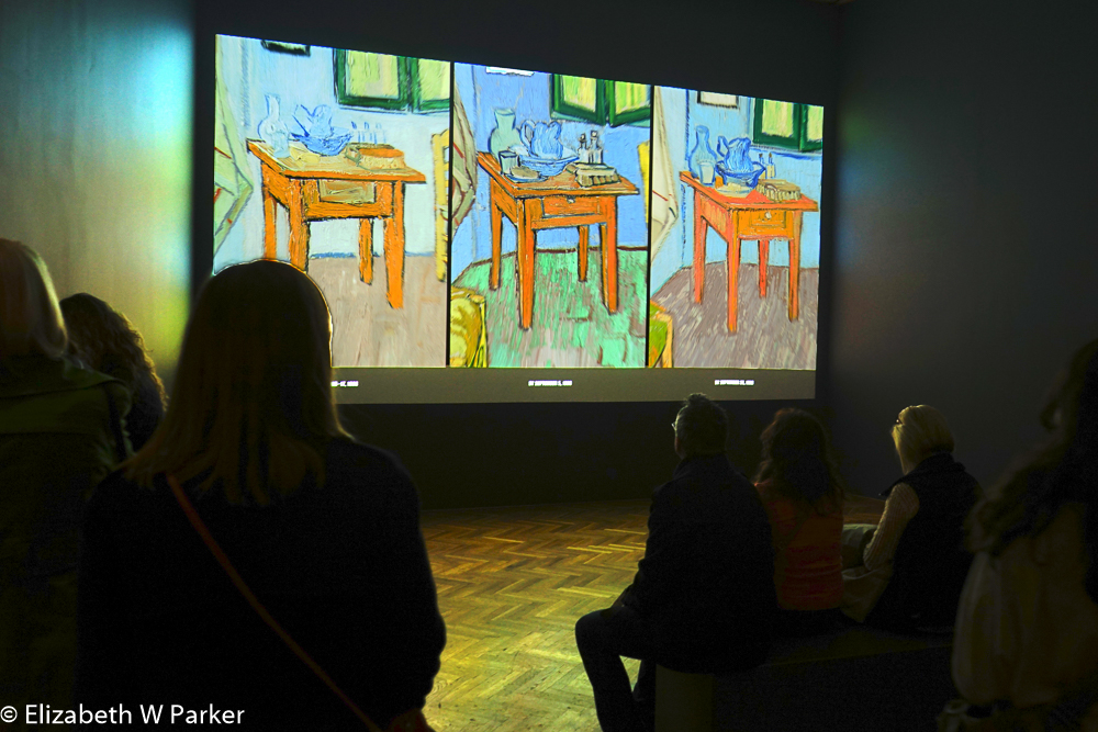 My first inkling of this exhibit was through a post on Facebook. I wondered at what I was reading … an exhibit based on three versions of Vincent Van Gogh’s famous painting of his bedroom at Arles … one of the paintings is owned by the Art Institute of Chicago, but sure the other three would be represented by proxies… That was my thinking and I left it at that.