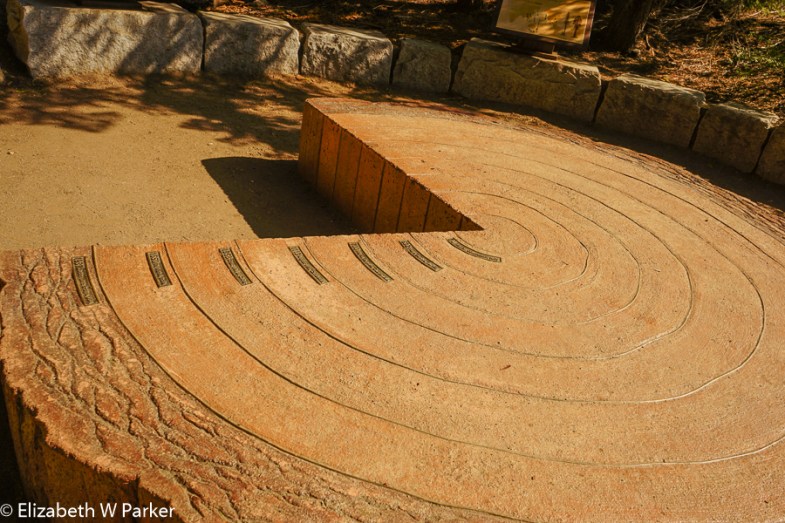 Exhibit of the rings of a Giant Sequoia – the first brass plaque denotes 70 CE