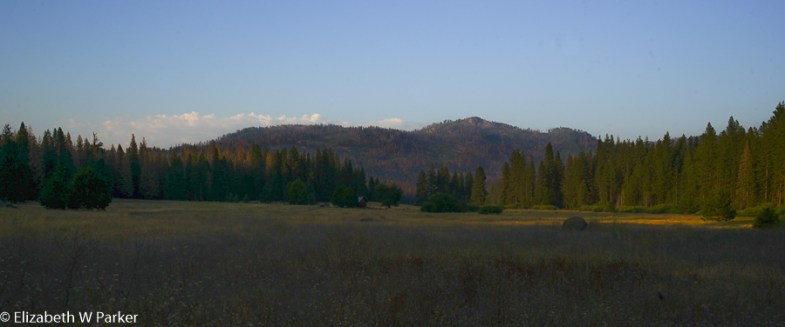 Colorful field at sunset along the drive to Hetch Hetchy