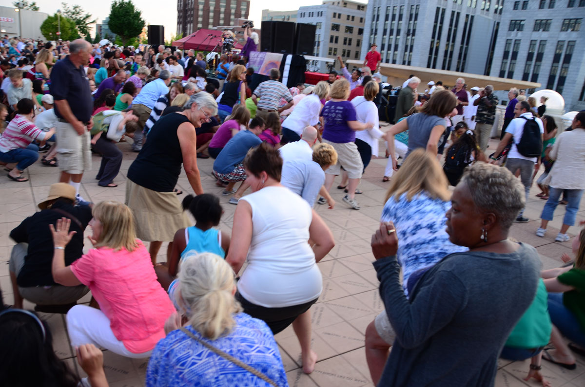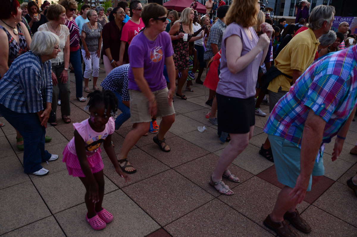 The crowd is out for a good time! Smiles and laughter abound. You’ll see lots of friends greeting one another and lots of new friendships in the making. The crowd is diverse, heavy on people of a “certain age” and young families, but literally all ages are represented. And everybody dances!