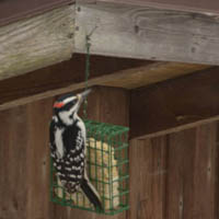 There is a woodshed in the front, too. My birdfeeders are there, so it appears in many of my bird photos. I put in a garden along the front of the house – a garden based on hours of research into what plants deer will NOT eat. The first winter we were here, those bold creatures would walk right up the shoveled walkway to the front door, just so they could eat the plants on either side!